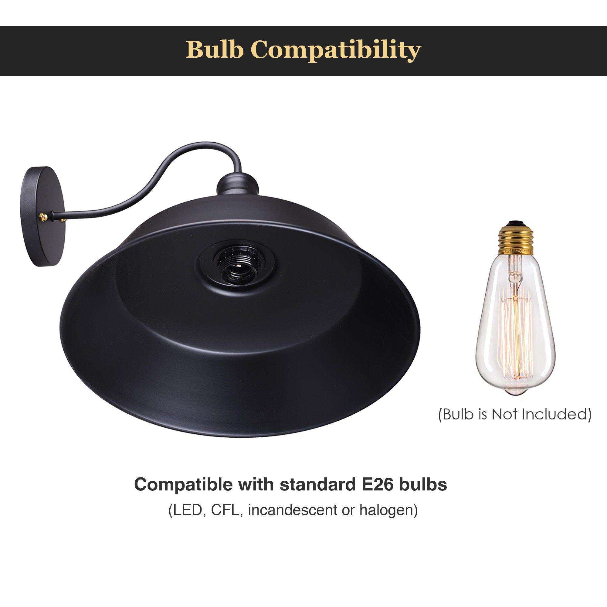 - Compatible with standard E26 bulbs (LED, CFL, incandescent or halogen), max light power is up to 40W
