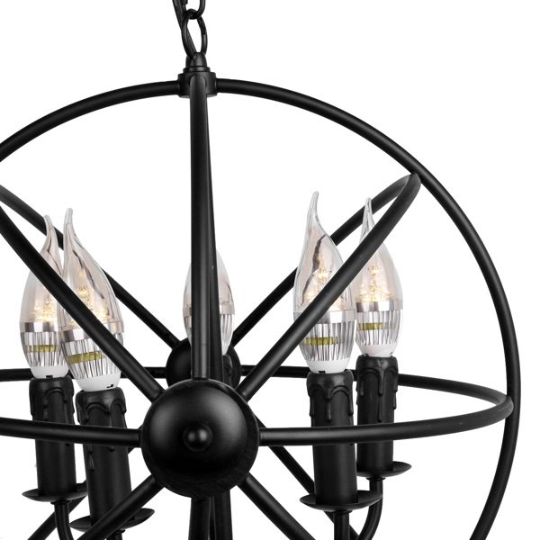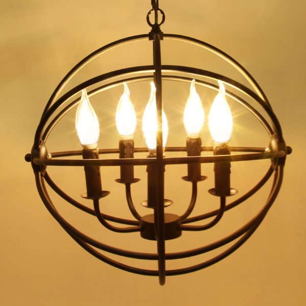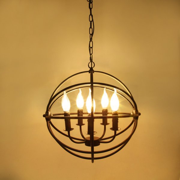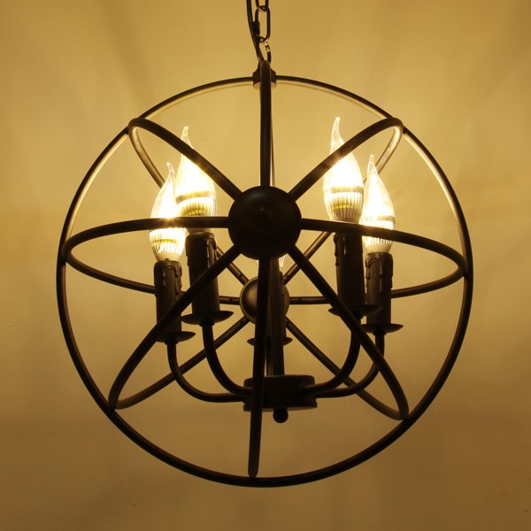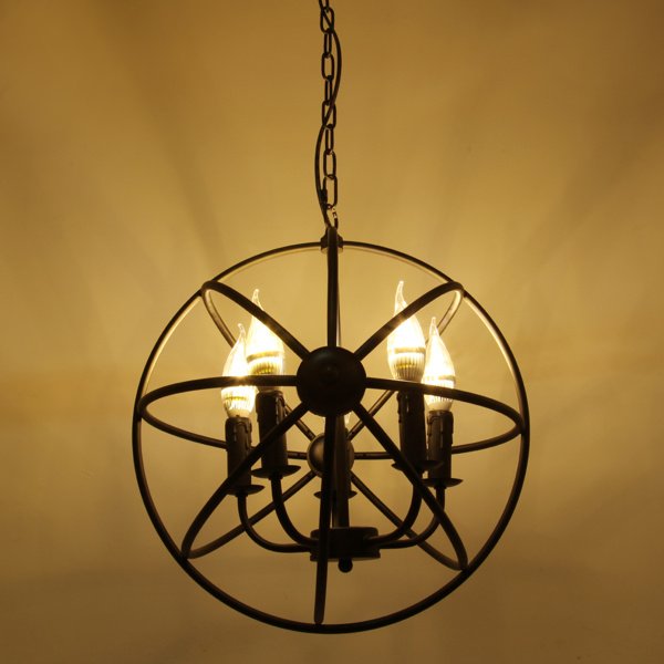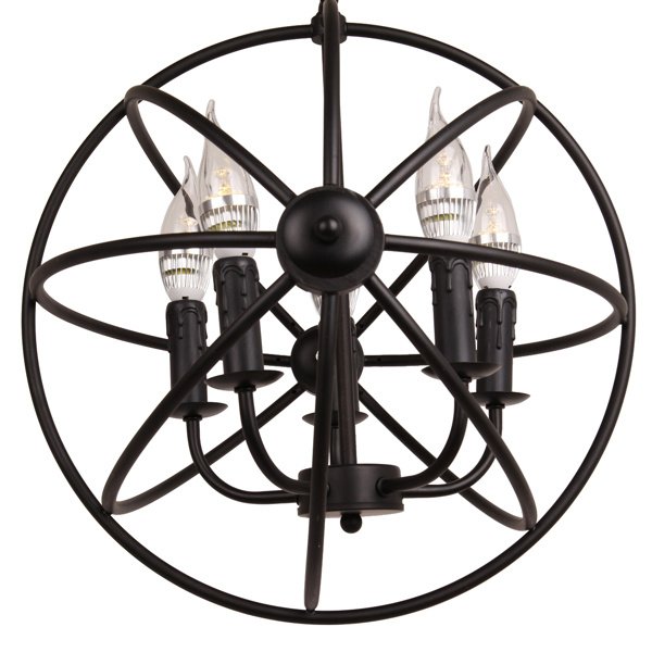 Home > 5-Light Globe Sphere Orb Cage Flush-Mount Chandelier Black Pendant Light Farmhouse Chandelier Candle Globe Ceiling Light Fixture