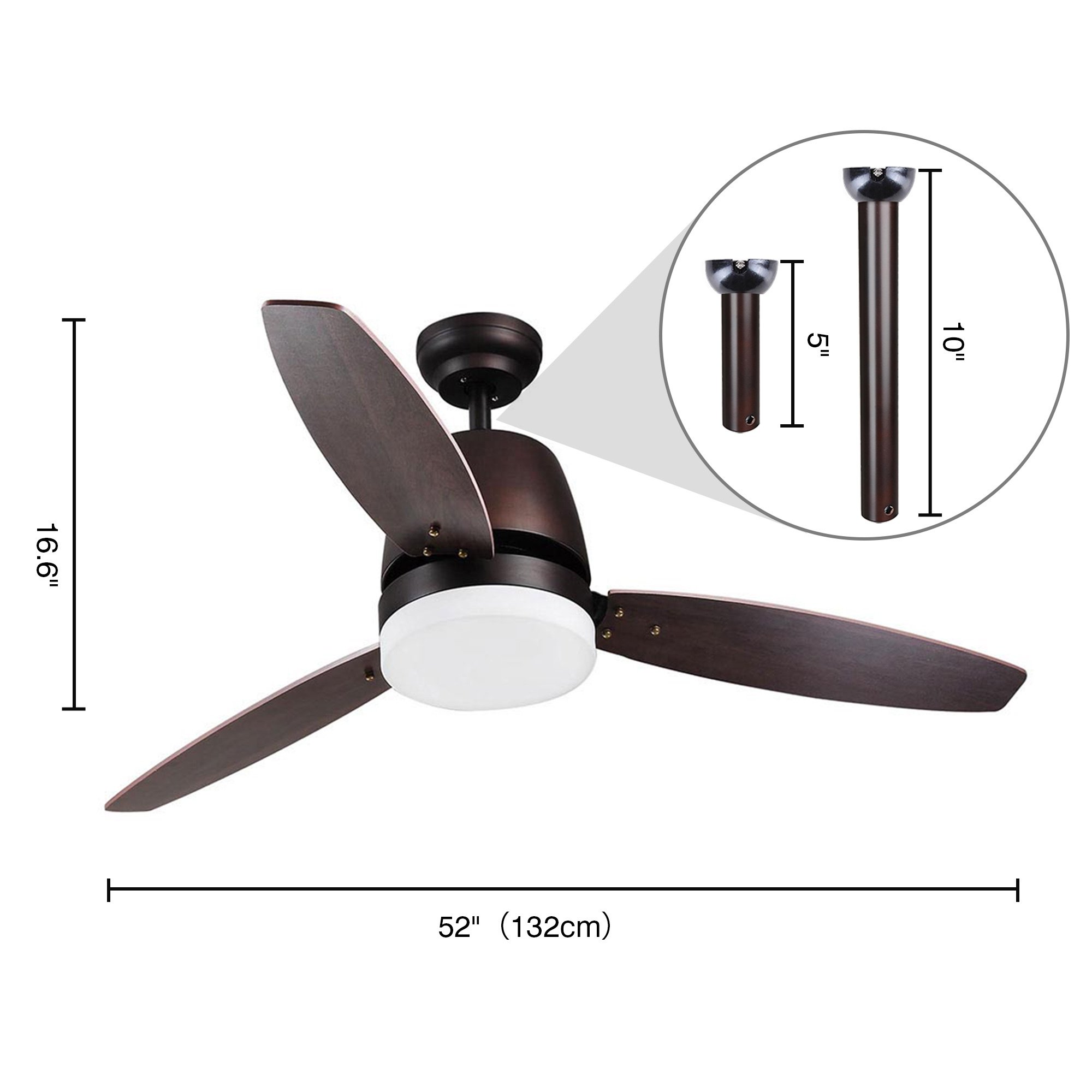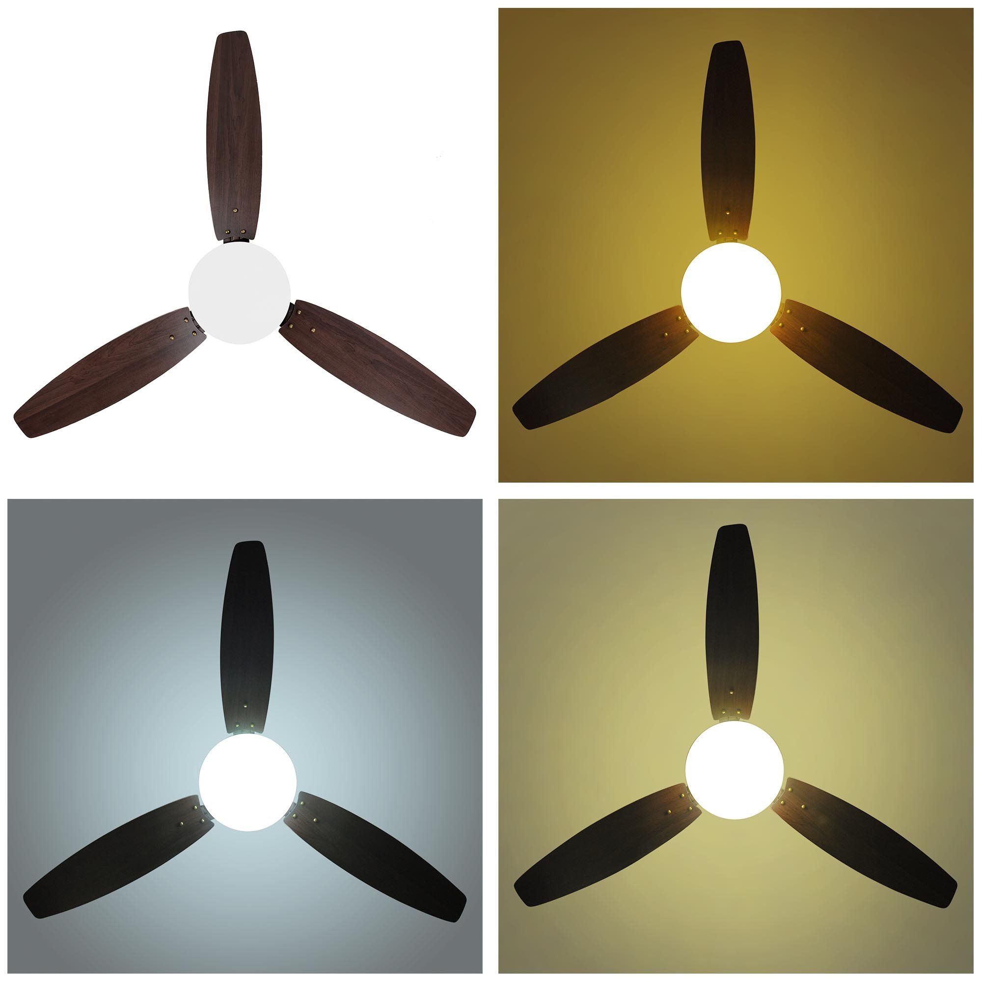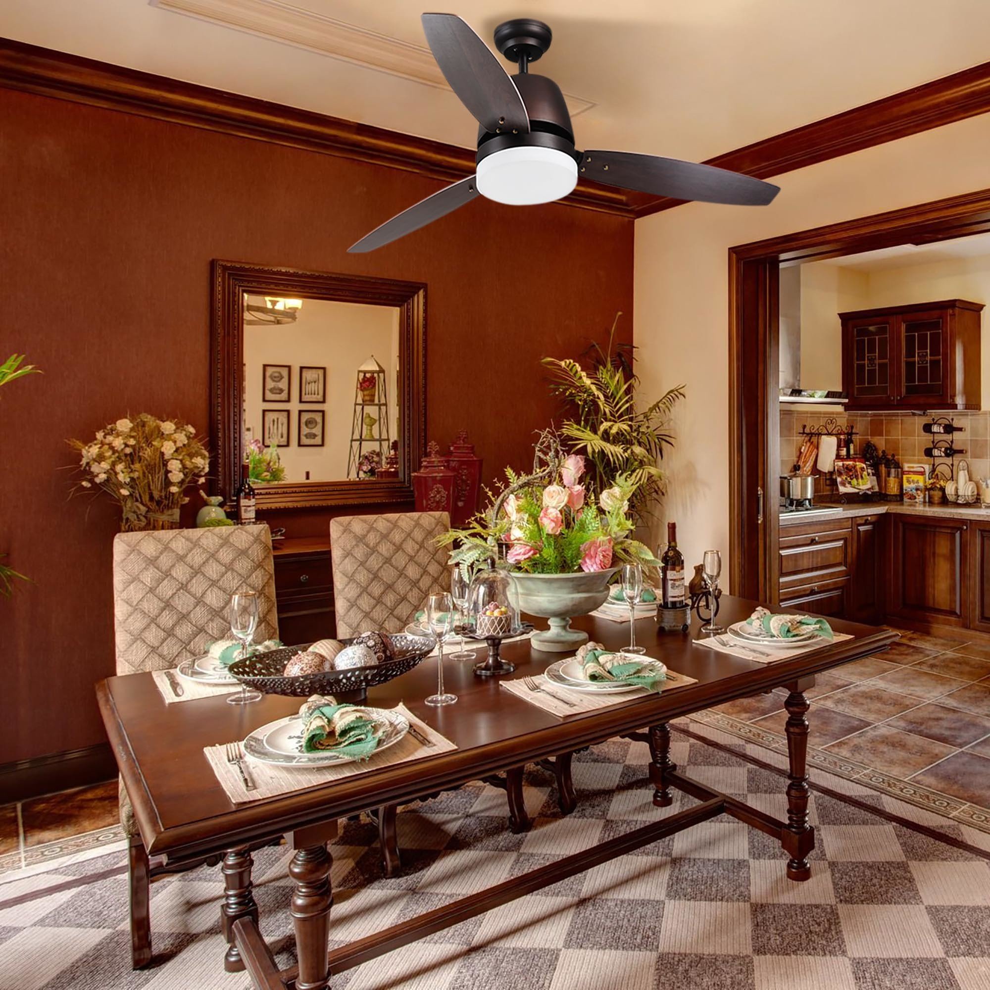- Elegant Design - 52" Ceiling Fan with LED light features a classic retro design with 3 double-sided blades; giving your room an elegant yet noble atmosphere at all times; The blades come with different colors on both sides for customizable installation to act as room decor