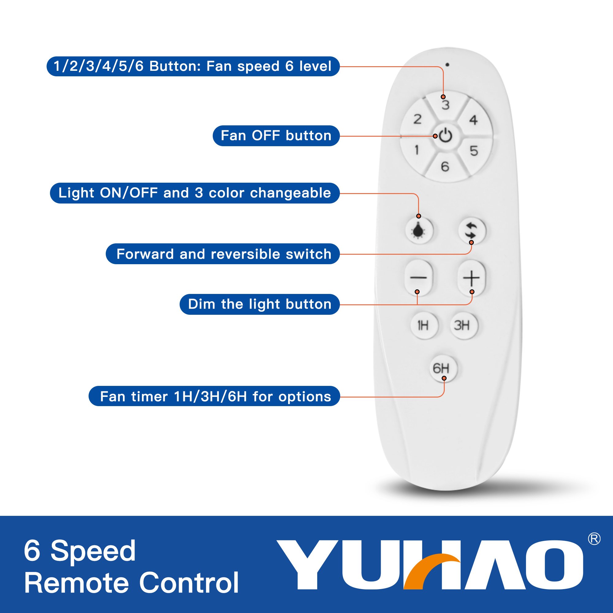 YUHAO 56-in. LED ceiling fan is suitable for any room in your home. Its finish looks like a flower and it will make your space more beautiful and design. It has a DC reversible motor, which will not only feel warm in winter and cool in summer, but will also be more energy efficient. It is controlled by remote control, powerful and more convenient to use. The timer function is very kind and can make you sleep more comfortably.