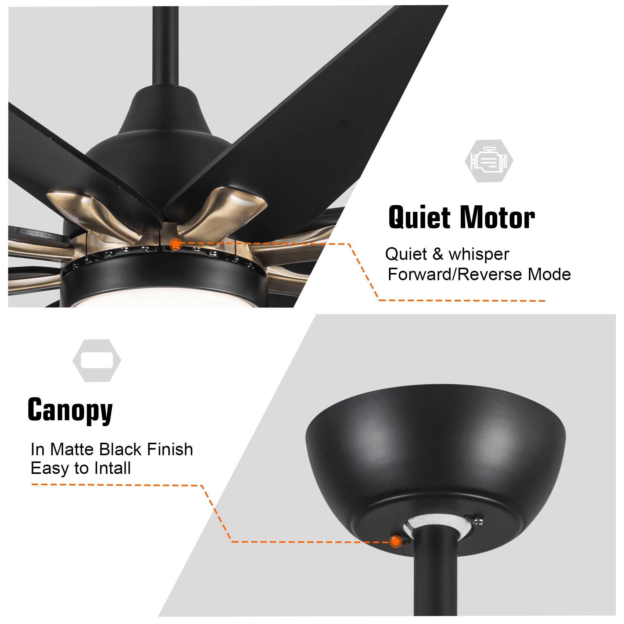 This is a antique black gold ceiling fan with a very light sense of luxury, which is the best choice for large spaces. First of all, the use of high-quality materials, its blades are made of wood, black with gold lines, showing a high-level and beautiful look. Secondly, the 72-inch blade span can accelerate the air flow faster, especially suitable for installation in the living room or dining room.Finally, its function is practical, using a high-quality motor to provide strong air movement and quiet performance, it is worth using with confidence.