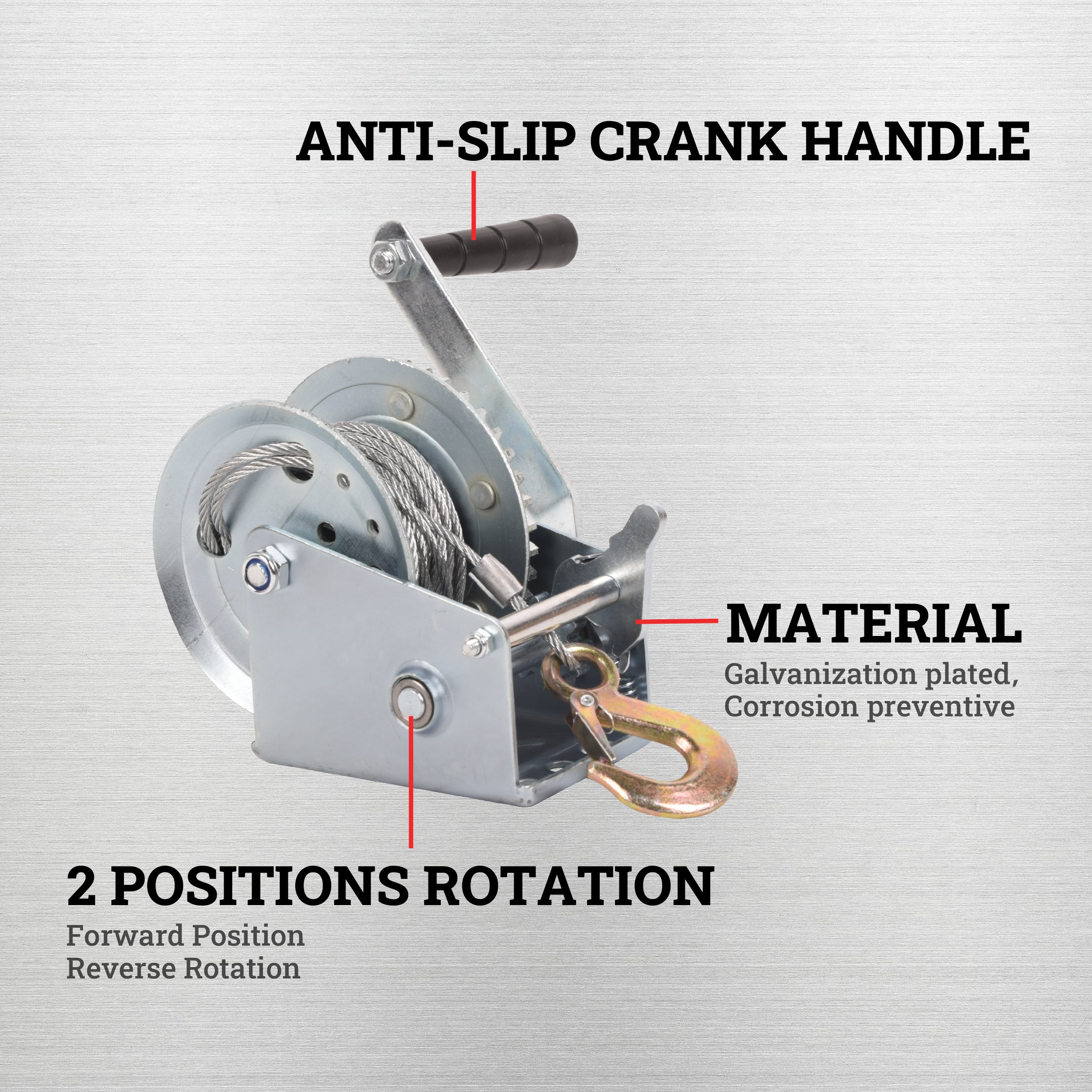 This 1200lbs heavy duty hand winch uses a gear pulley system with one-handed effort to move heavy loads with ease.