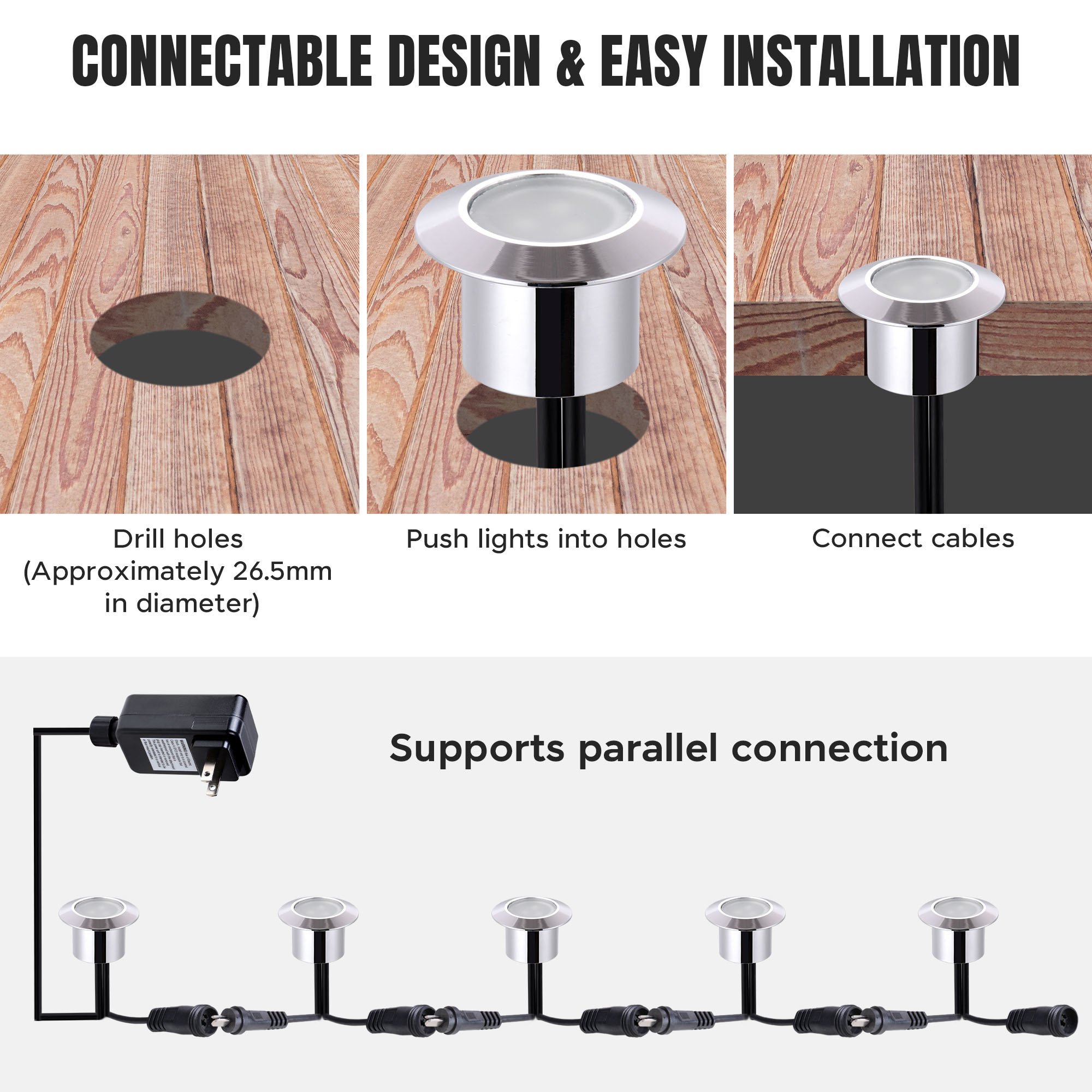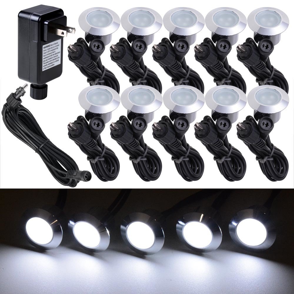 10pcs Cool White LED Deck Lights Set with Transformer & Wire