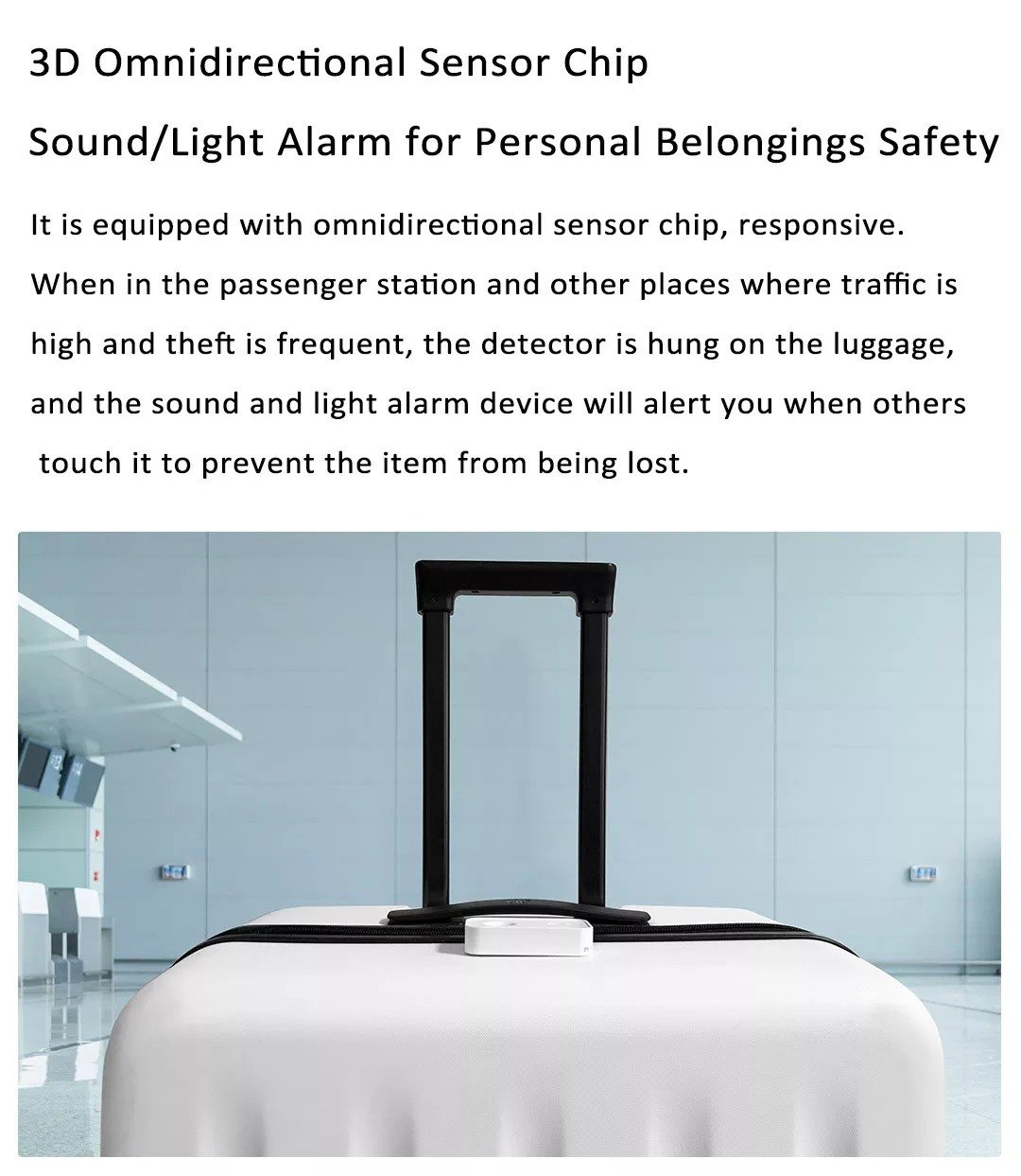 1. 3D omnidirectional sensor chip; sound and light alarm protection for personal belongings.It is equipped with omnidirectional sensor chip; responsive. When in the passenger station and other places where traffic is high and theft is frequent; the detector is hung on the luggage; and the sound and light alarm device will alert you when others touch it to prevent the item from being lost.