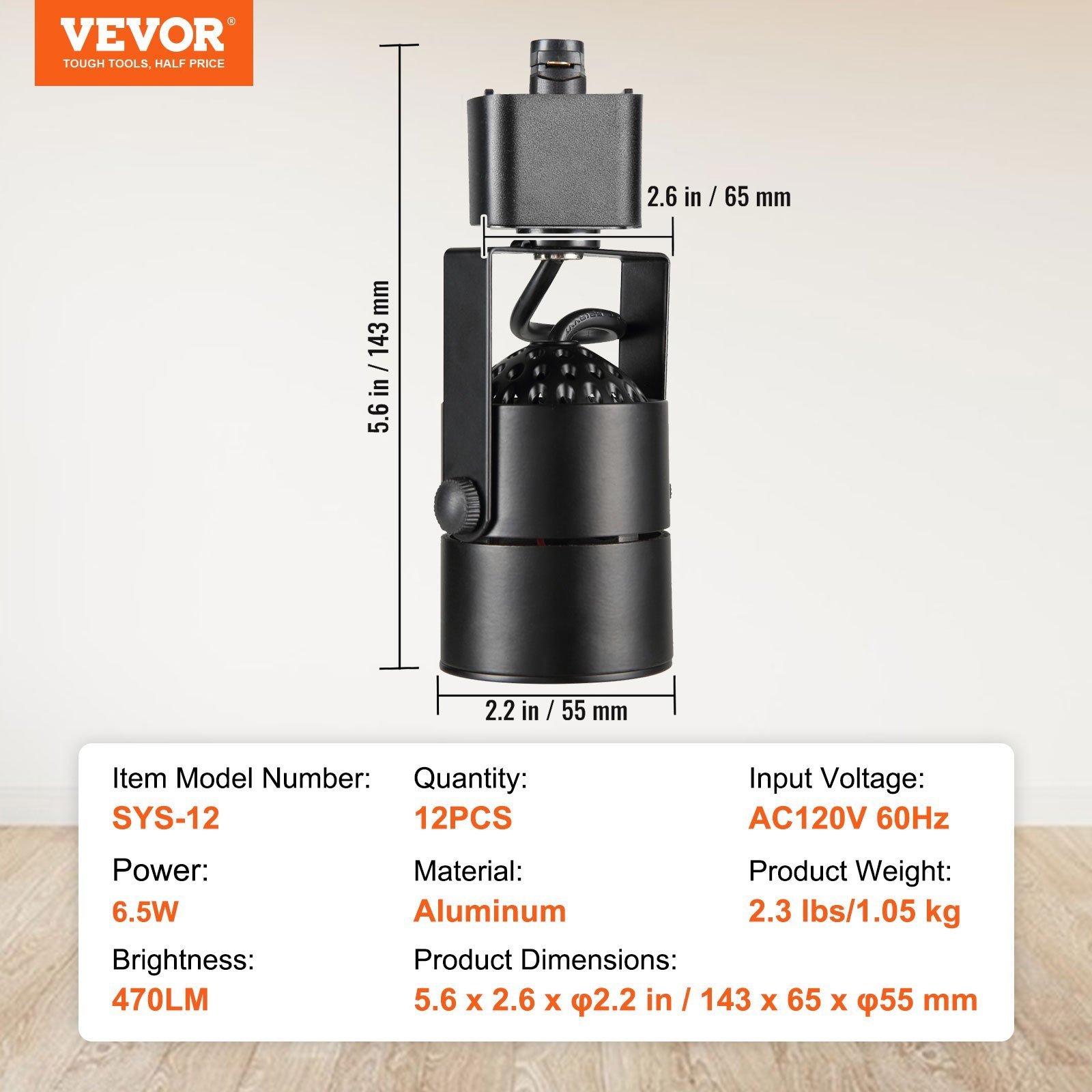 Home > VEVOR LED Track Lighting Heads, 6.5W 3000K 470lm Warm White, Dimmable H Type Track Light Head, CRI85+ True Color Rendering Adjustable Tilt Angle Track