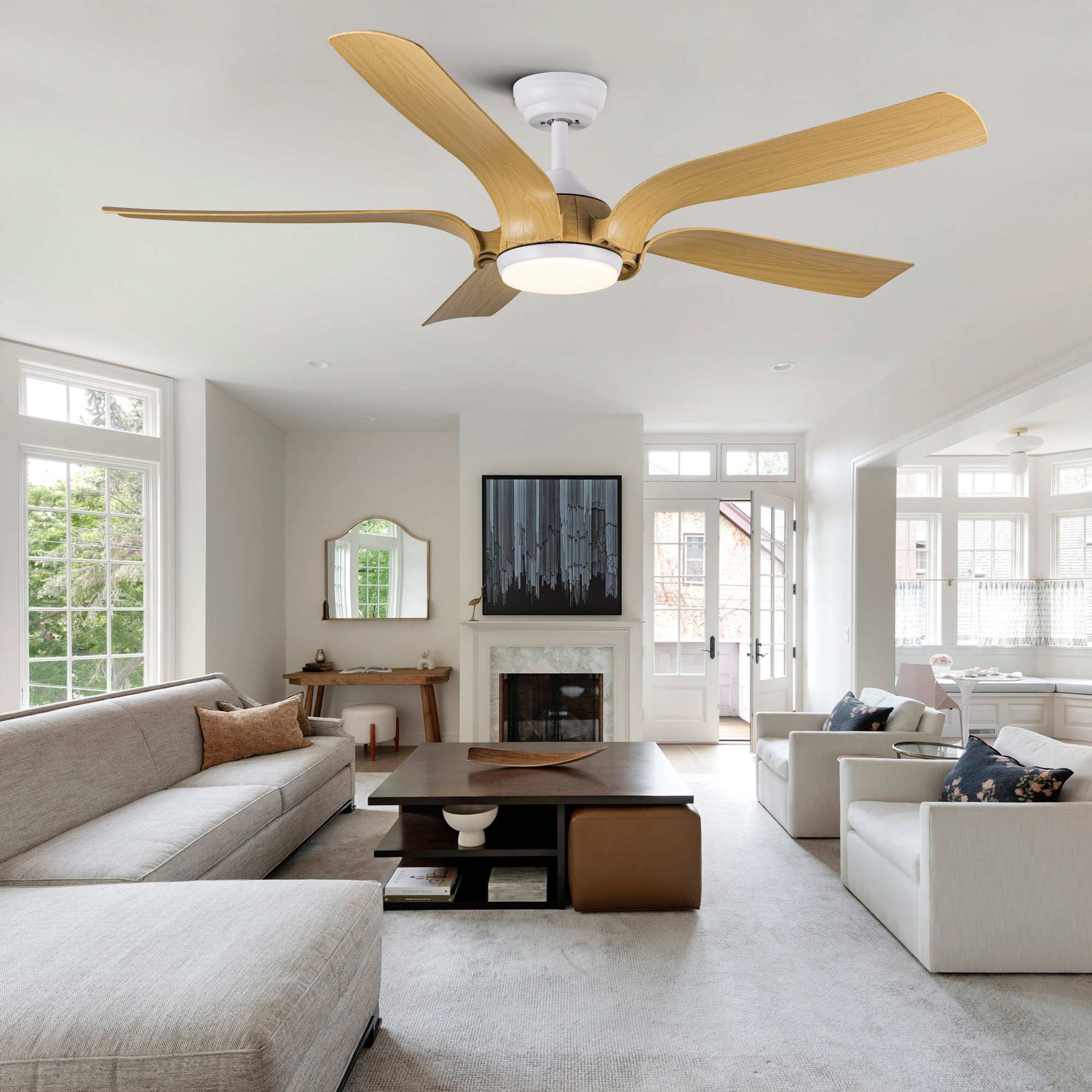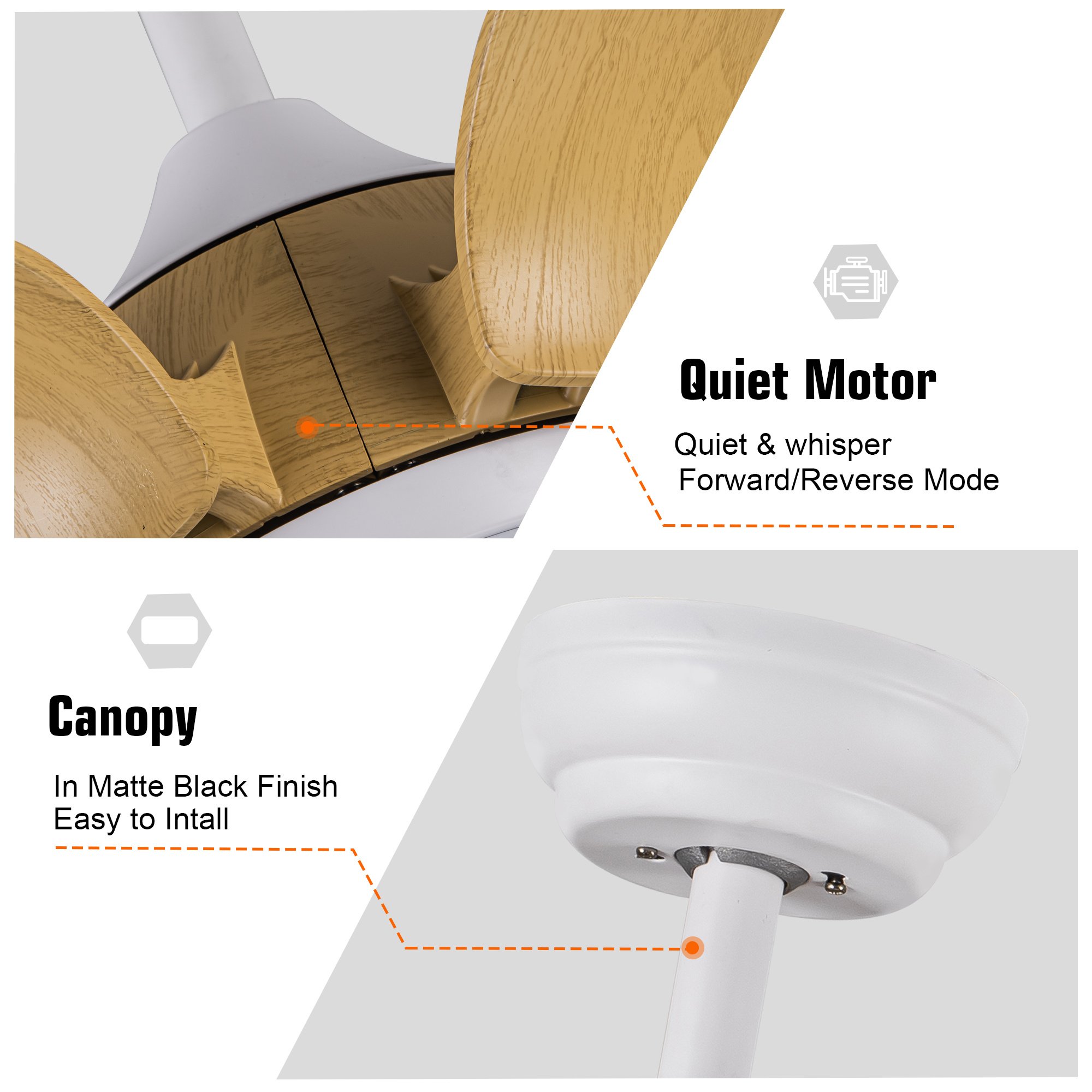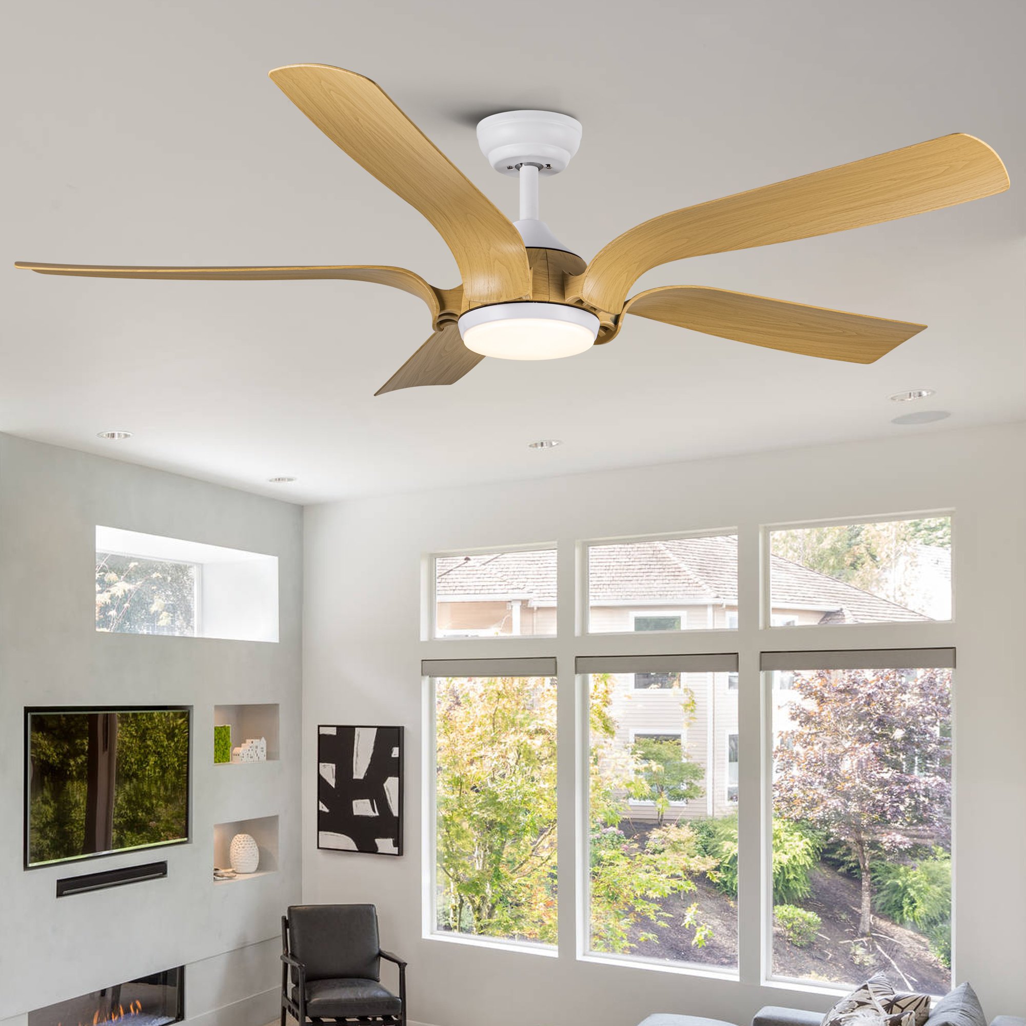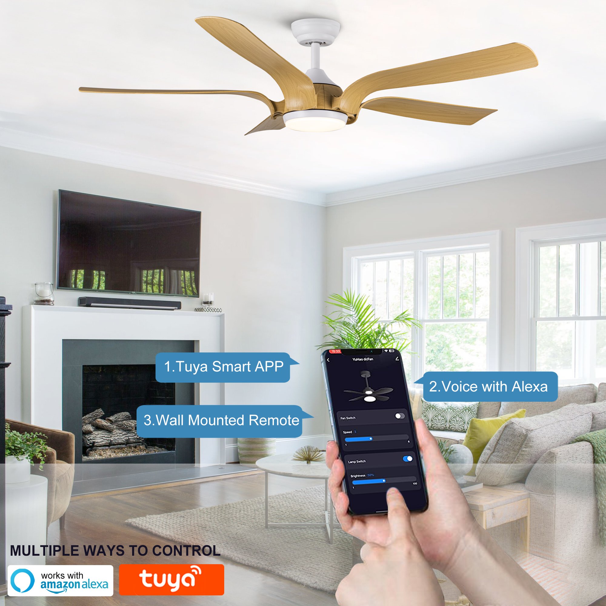 Home > YUHAO 56 in.Farmhouse Integrated LED Faux Wood White Smart Ceiling Fan with Remote Control and DC Motor