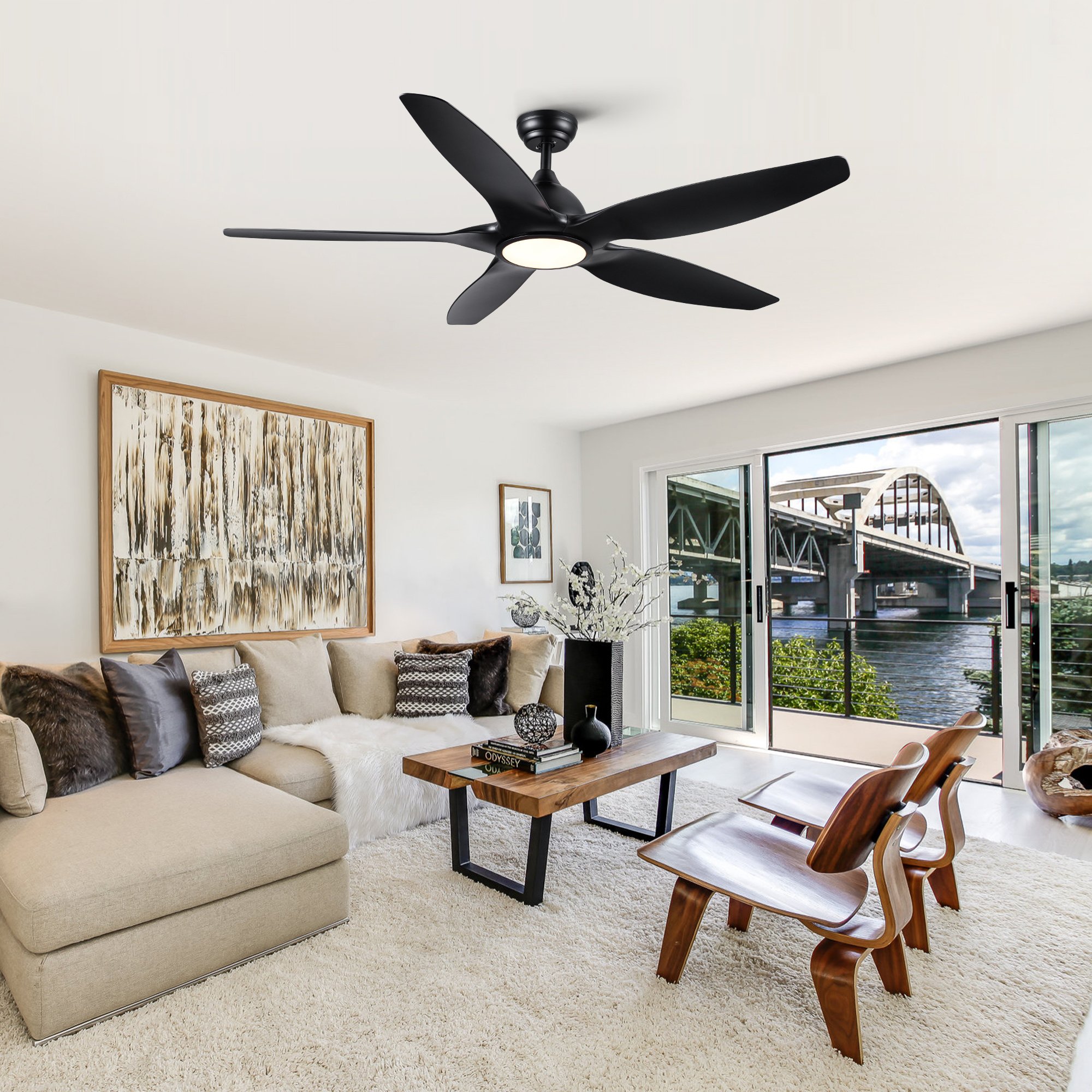 Home > YUHAO 60 in. Integrated LED Indoor&Outdoor Matte Black Ceiling Fan with Light Kit and Remote