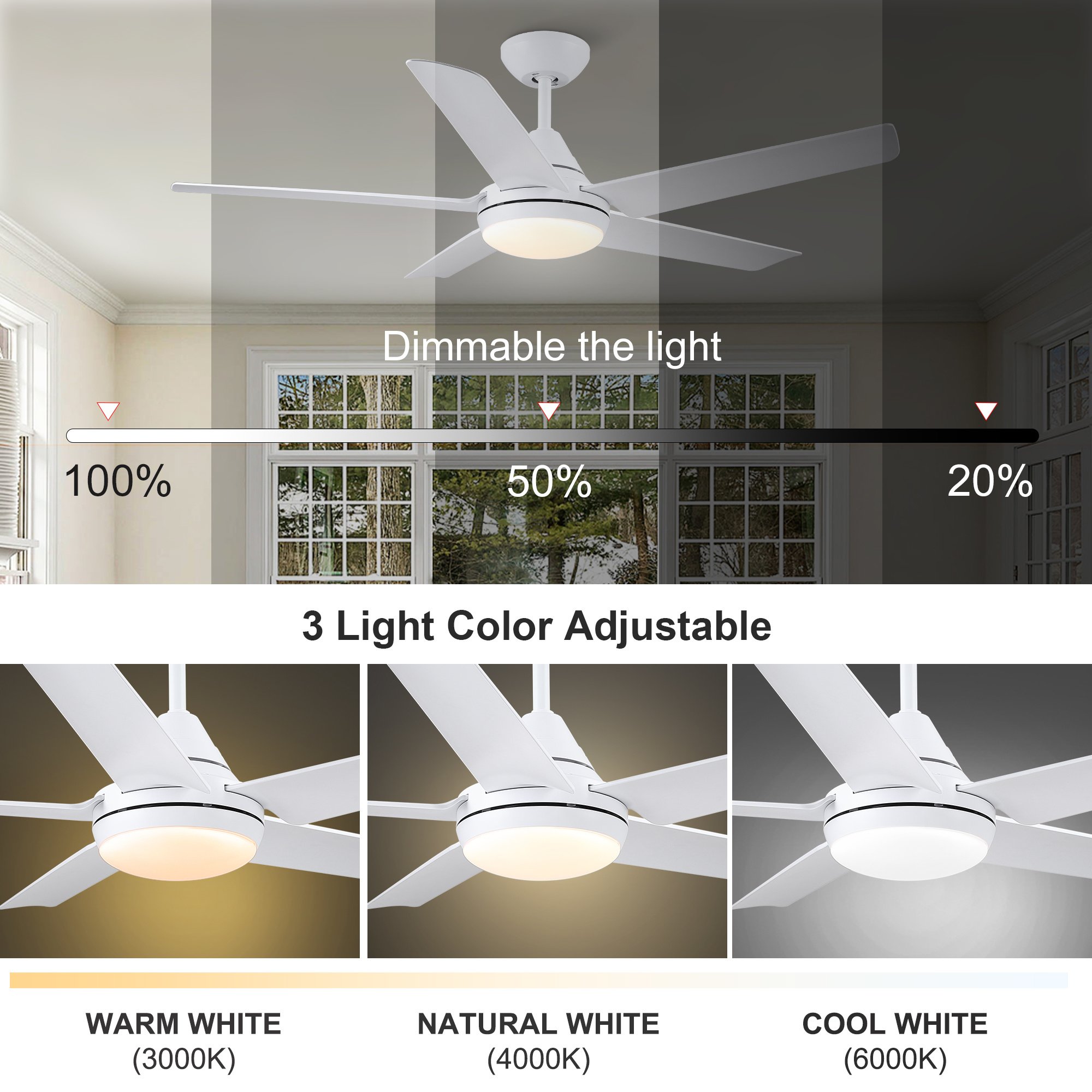 Home > YUHAO Modern 48 in. Integrated LED Ceiling Fan Lighting with 5 White Blades