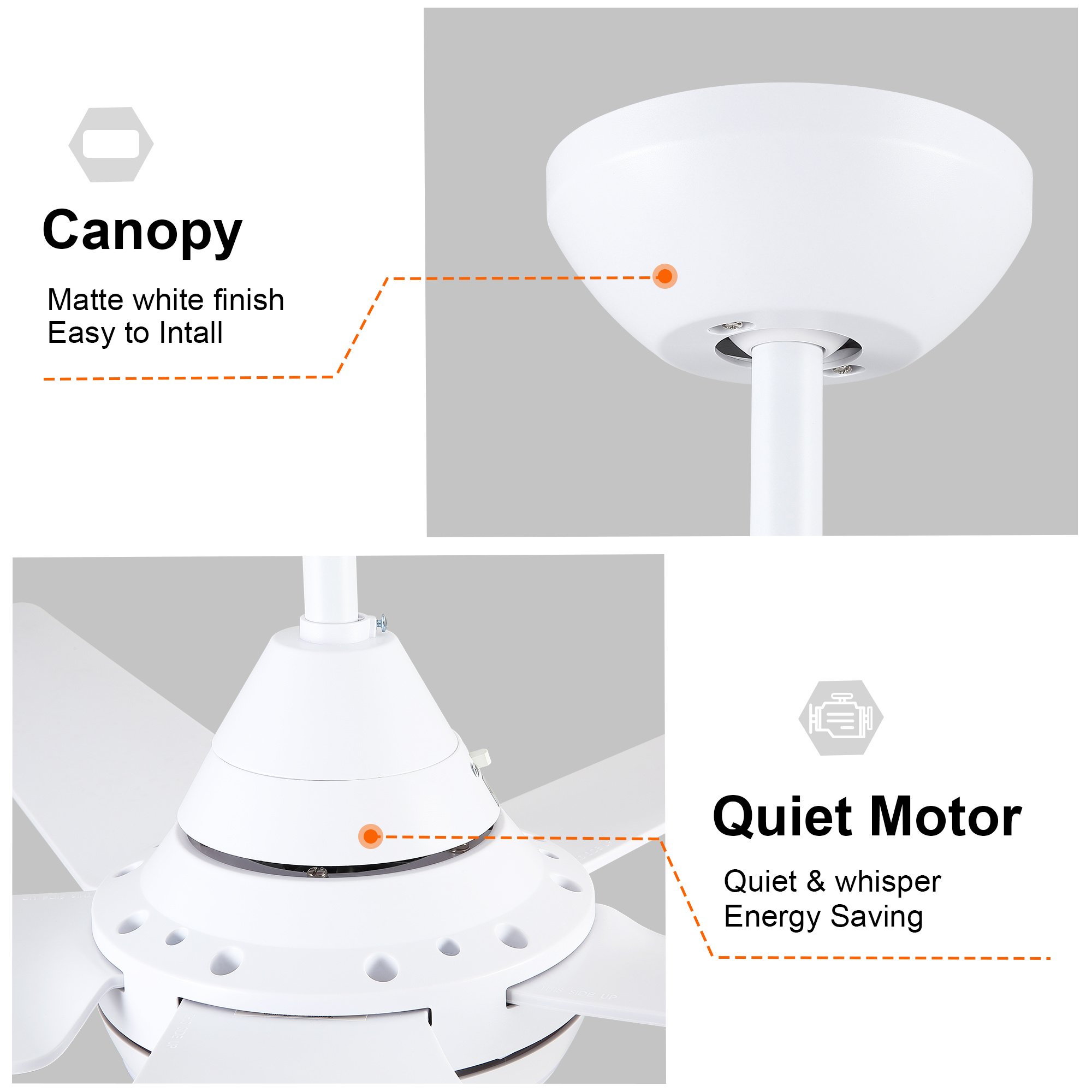 Add an instant upgrade to your home's look and improve air circulation by installing a ceiling fan.This 48 in. ceiling fan design with ABS blade in white finish would be perfect for decorating your modern and contemporary home. Add a touch of grace and elegance to any indoor space with the 48 in. white ceiling fan. The 48 in. white motor shade features an integrated LED light kit with smooth arylic provides bright efficient illumination.